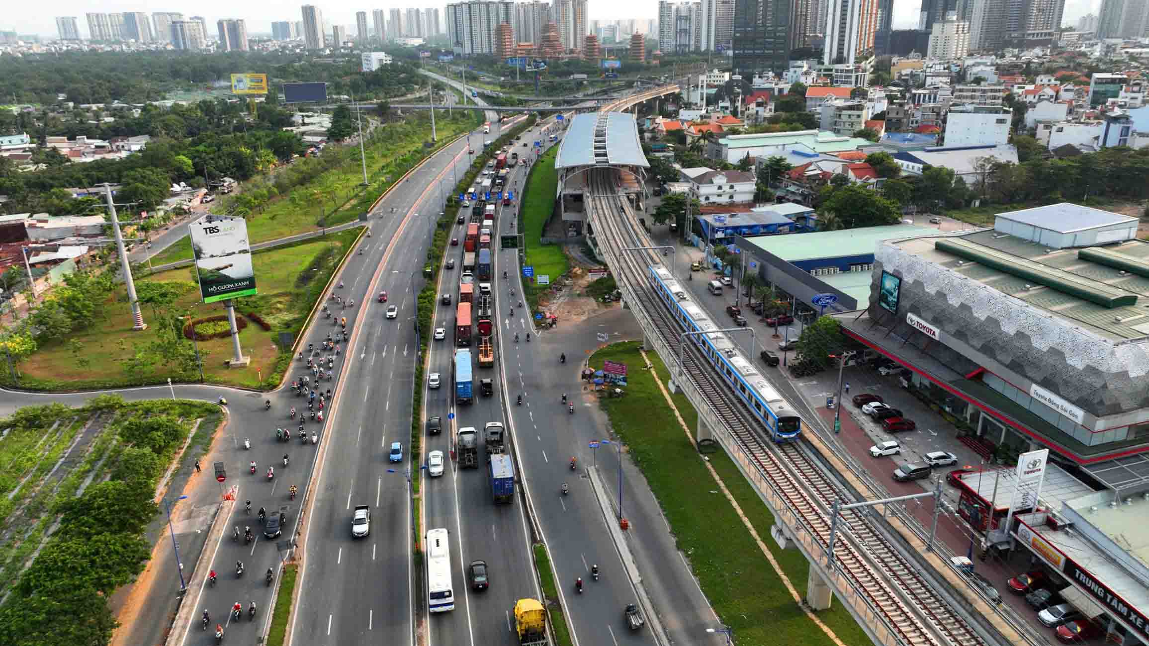 Trong tương lai, siêu đô thị TP.HCM cần tái cấu trúc thành một đô thị đa cực, tức nhiều trung tâm chức năng khác nhau nhưng kết nối bằng hạ tầng siêu kết nối. Ảnh: Lê Toàn. |