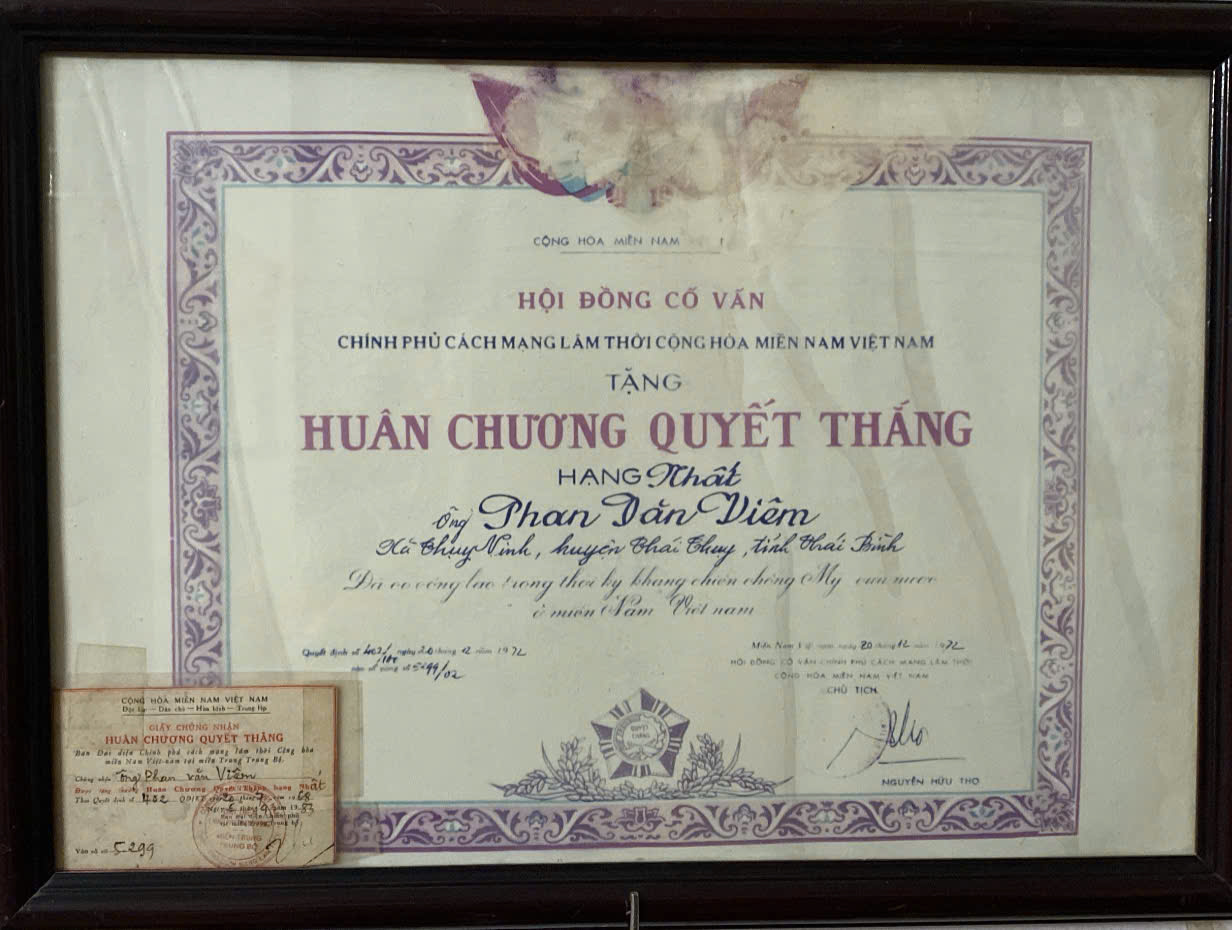 Huân chương Quyết thắng hạng Nhất của Anh hùng lực lượng vũ trang nhân dân Phan Văn Viêm. |