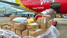 Những chuyến bay Vietjet chở đầy yêu thươngGiữa những dãy thùng hàng chất cao, người kiểm đếm, người ghi phiếu, người bốc xếp…, mọi công việc diễn ra hối hả, khẩn trương để những chuyến bay Vietjet vận chuyển hàng cứu trợ của người dân cả nước đến với đồng bào đang gồng mình giữa vùng mưa lũ. -