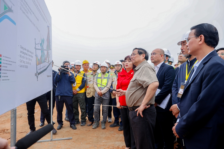 Thăm hỏi, tặng quà, động viên các đơn vị đang thi công ngày đêm trên các công trường, Thủ tướng động viên anh em tập trung lực lượng, máy móc, thiết bị, nỗ lực vượt mọi khó khăn, làm "3 ca, 4 kíp", "ăn tranh thủ, ngủ khẩn trương", "vượt nắng thắng mưa, không thua bão gió" để bảo đảm tiến độ các hạng mục.