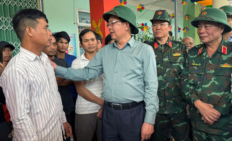 Phó thủ tướng cũng đến kiểm tra tình hình, thăm hỏi lực lượng chức năng, người dân tại xã Tây Trà Bồng.