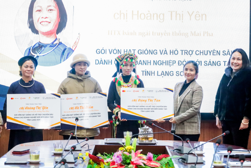 | Bà Trần Thị Minh Nguyệt trao tặng gói vốn hạt giống và hỗ trợ chuyên sâu dành cho doanh nghiệp đổi mới sáng tạo tỉnh Lạng Sơn. |
