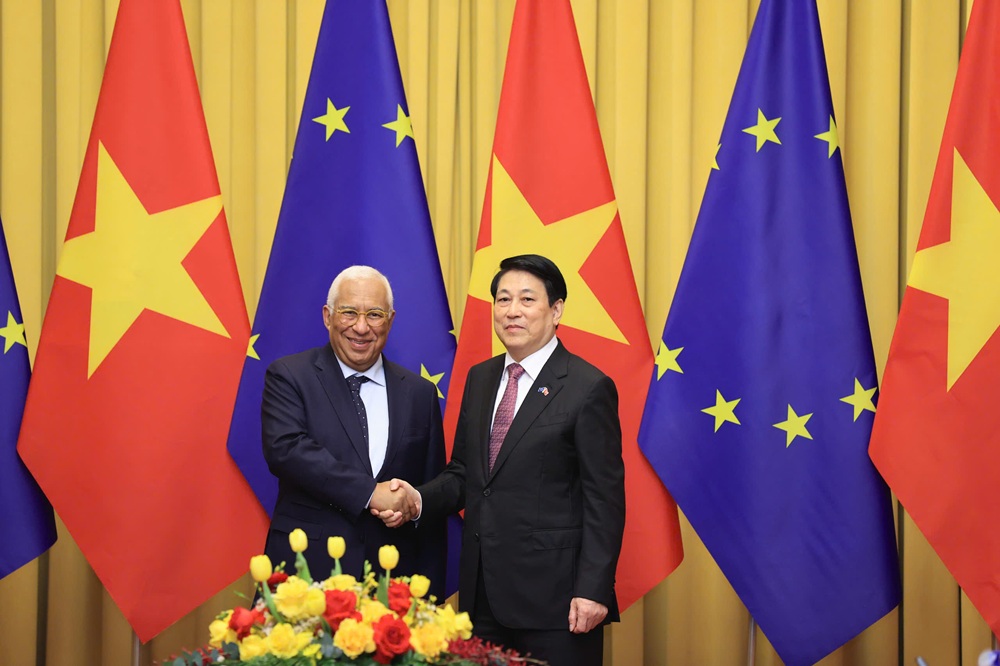 Tại cuộc hội đàm, thay mặt Nhà nước và nhân dân Việt Nam, Chủ tịch nước Lương Cường nhiệt liệt chào mừng Chủ tịch Hội đồng Châu Âu Antonio Costa thăm chính thức Việt Nam.