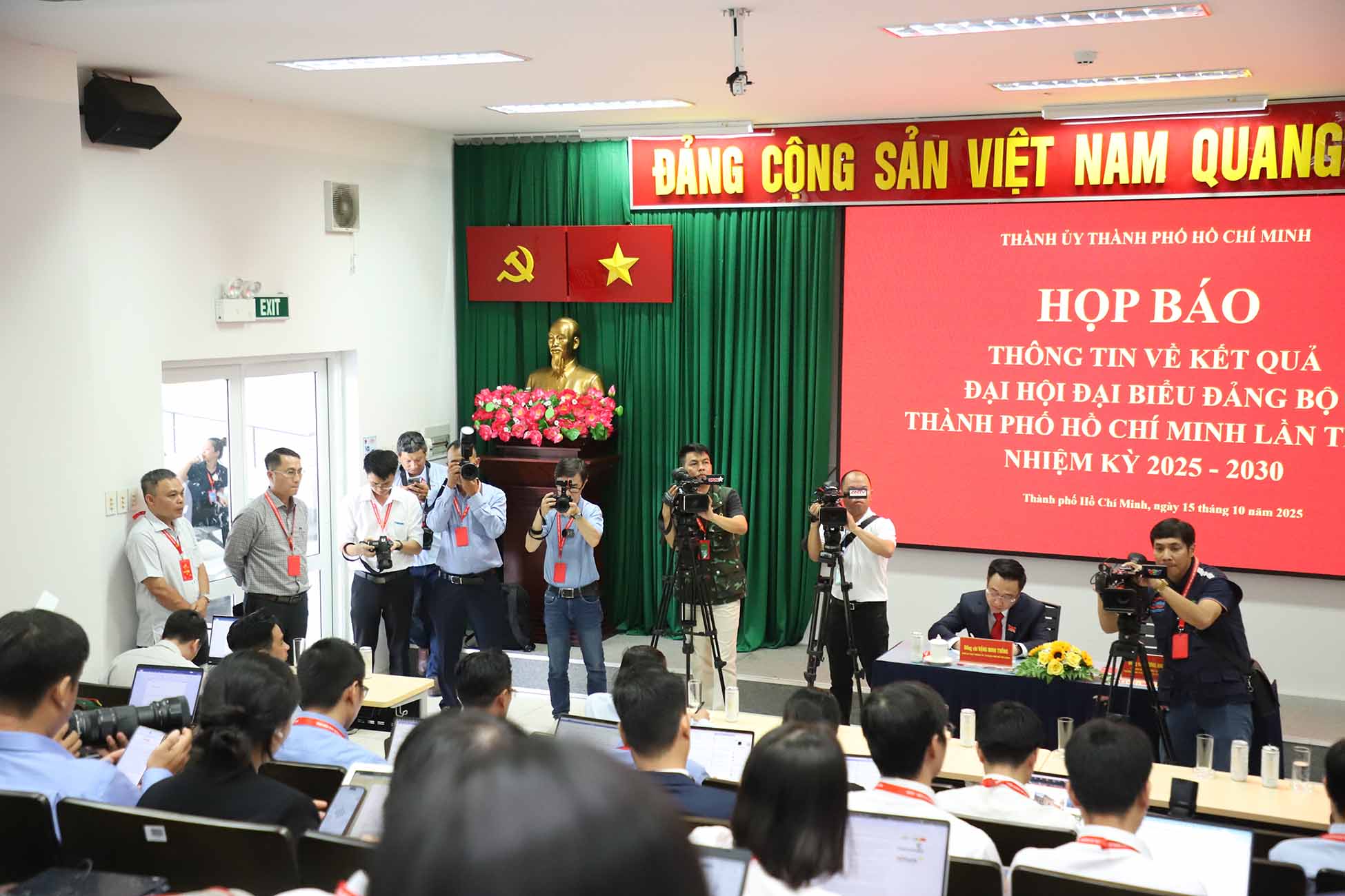 Trưa 15/10, ngay sau phiên bế mạc Đại hội Đảng bộ TP.HCM nhiệm kỳ 2025 - 2030, Thành ủy Thành phố tổ chức họp báo thông báo kết quả của Đại hội.