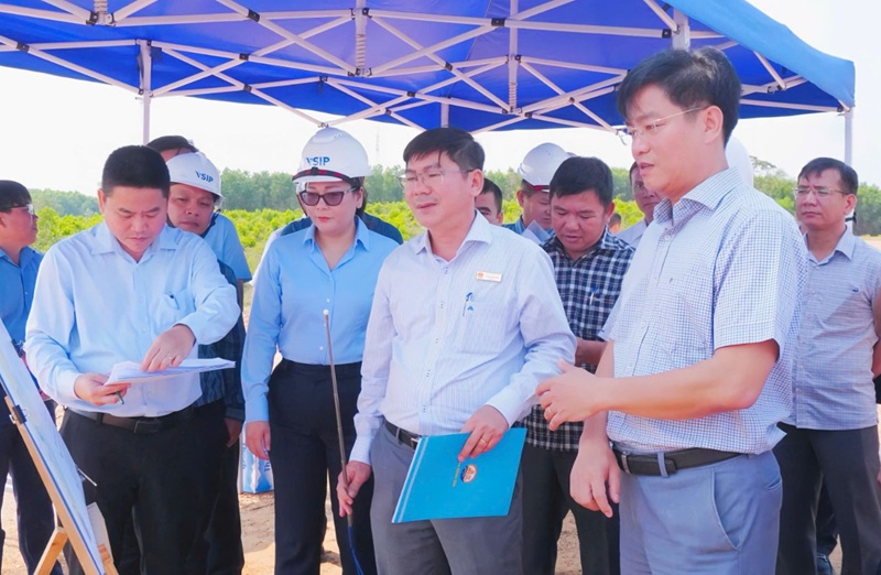| Lãnh đạo UBND tỉnh Quảng Ngãi kiểm tra Dự án Đầu tư xây dựng và kinh doanh kết cấu hạ tầng khu công nghiệp VSIP II Quảng Ngãi. |
