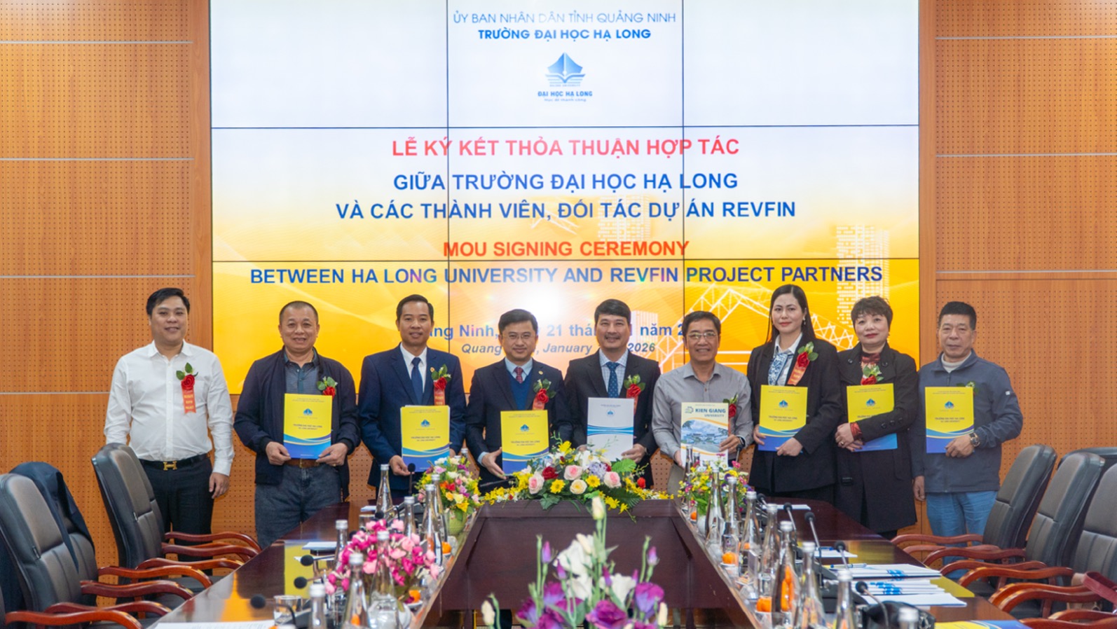 | Lễ ký kết biên bản ghi nhớ hợp tác giữa các trường thành viên Dự án REVFIN và các đối tác doanh nghiệp về việc thúc đẩy mạng lưới kinh tế tuần hoàn. |