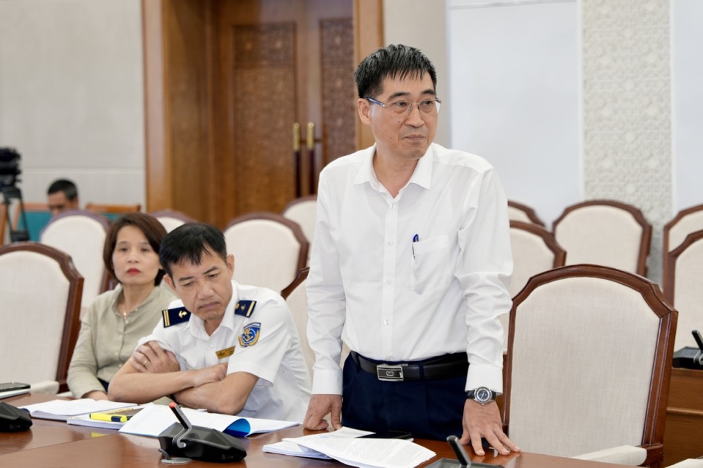 | Ông Nguyễn Ngọc Thành, Giám đốc Cảng vụ Hàng hải Quảng Ninh phát biểu tại buổi làm việc. Ảnh: QMG |