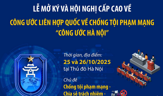 Việt Nam đăng cai tổ chức Lễ mở ký và Hội nghị cấp cao về Công ước Liên hợp quốc về chống tội phạm mạng - “Công ước Hà Nội” với chủ đề “Chống tội phạm mạng - Chia sẻ trách nhiệm - Hướng tới tương lai” tại Thủ đô Hà Nội vào ngày 25 và 26/10/2025.