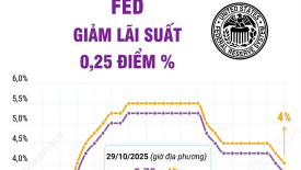 Cục Dự trữ liên bang Mỹ (Fed) ngày 29/10/2025 đã quyết định cắt giảm lãi suất 0,25 điểm phần trăm trong bối cảnh nội bộ ngân hàng này có sự chia rẽ về hướng đi chính sách. Fed hạ lãi suất chủ chốt xuống khoảng 3,75% - 4%, đánh dấu lần hạ lãi suất thứ hai trong năm nay, đúng như kỳ vọng của giới đầu tư.