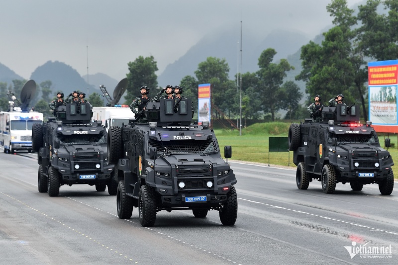 | Phương tiện, khí tài của Bộ Công an tham gia luyện tập diễu binh, diễu hành cho lễ kỷ niệm 80 năm Quốc khánh. Ảnh: Vietnamnet. |