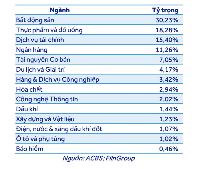 | Tỷ trọng danh mục VanEck Vietnam ETF theo ngành |