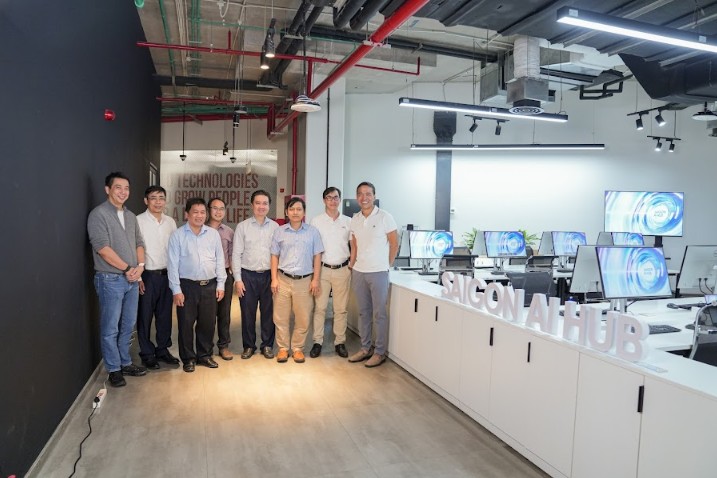 | Lãnh đạo Đại học Quốc gia TP.HCM và VNGt tại Saigon AI Hub. |