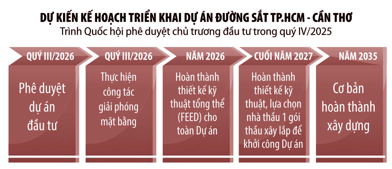 Dự án đường sắt TP.HCM - Cần Thơ được định hướng xây dựng mới tuyến đường sắt điện khí hóa, khổ 1.435 mm, dài 175,2 km, phục vụ vận chuyển cả hành khách và hàng hóa. Tuyến sẽ được triển khai bằng vốn đầu tư công, với tốc độ thiết kế cho tàu khách đạt 160 km/h.