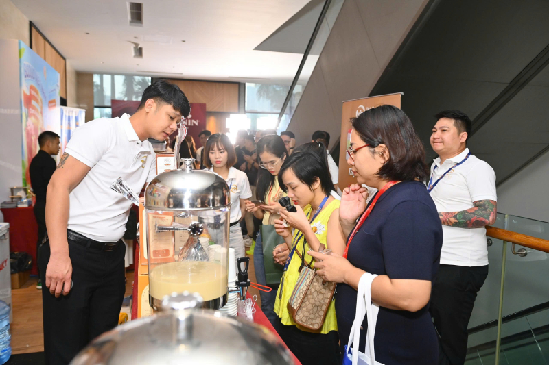 Triển lãm và kết nối giao thương tại Vietnam F&B Summit 2025 quy tụ hơn 20 gian hàng từ các thương hiệu như Nestlé Professional, MoMo, Nhất Hương, PesoTea, ATS Việt Nam... |
