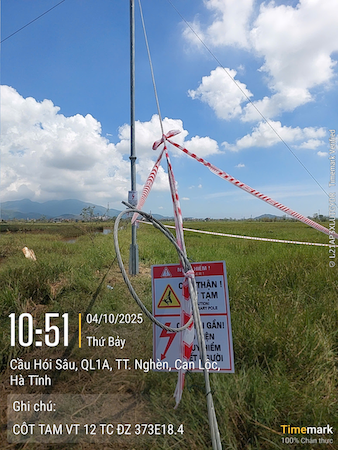 Hiện nay, để sớm cấp điện trở lại cho khách hàng sau bão, PC Hà Tĩnh đang phải sử dụng một số cột tạm như cột tre, gỗ…, vì vậy, đặc biệt khuyến cáo bà con tuyệt đối không trèo lên các vị trí cột tạm, cũng như không có bất kỳ tác động vật lý nào lên cột, vì tiềm ẩn nguy cơ mất an toàn rất cao.