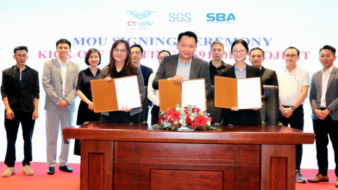 | Lễ ký kết giữa CT UAV và SGS, SBA triển khai xây dựng tiêu chuẩn AS9100D, ISO 9001. |