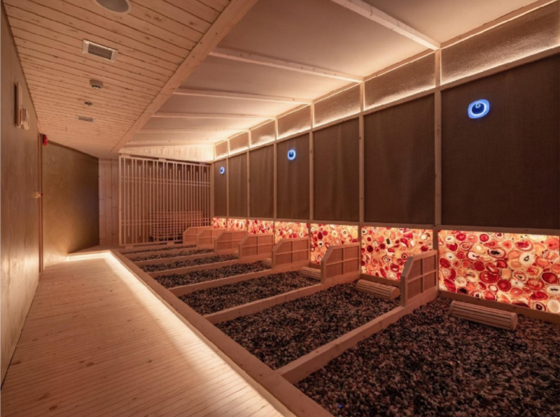 Tại đây, du khách bước vào hành trình trị liệu 14 bước, kết hợp giữa thủy trị liệu và nhiệt trị liệu. Hệ thống gồm 9 phòng xông chuyên biệt như đá Ganbanyoku, đất sét vàng, đá muối Himalaya, phòng Oxy Hinoki. Mỗi không gian mang một công năng riêng, từ giải độc, tăng cường tuần hoàn đến phục hồi năng lượng.