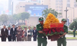 Đoàn đại biểu tỉnh Hủa Phăn (Lào) dâng hoa tại Tượng đài Chủ tịch Hồ Chí Minh -
