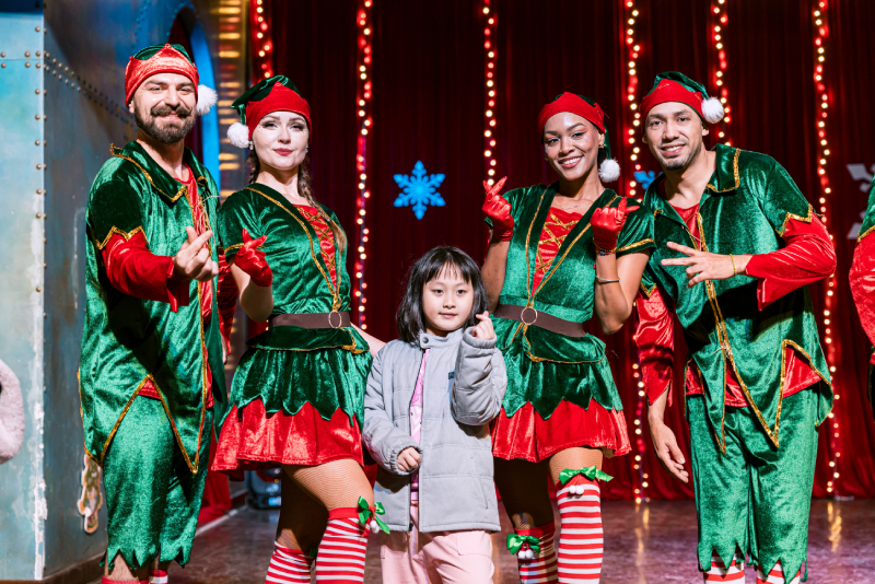 Các vũ công hóa trang ông già Noel khuấy động không khí bằng những tương tác vui nhộn. |