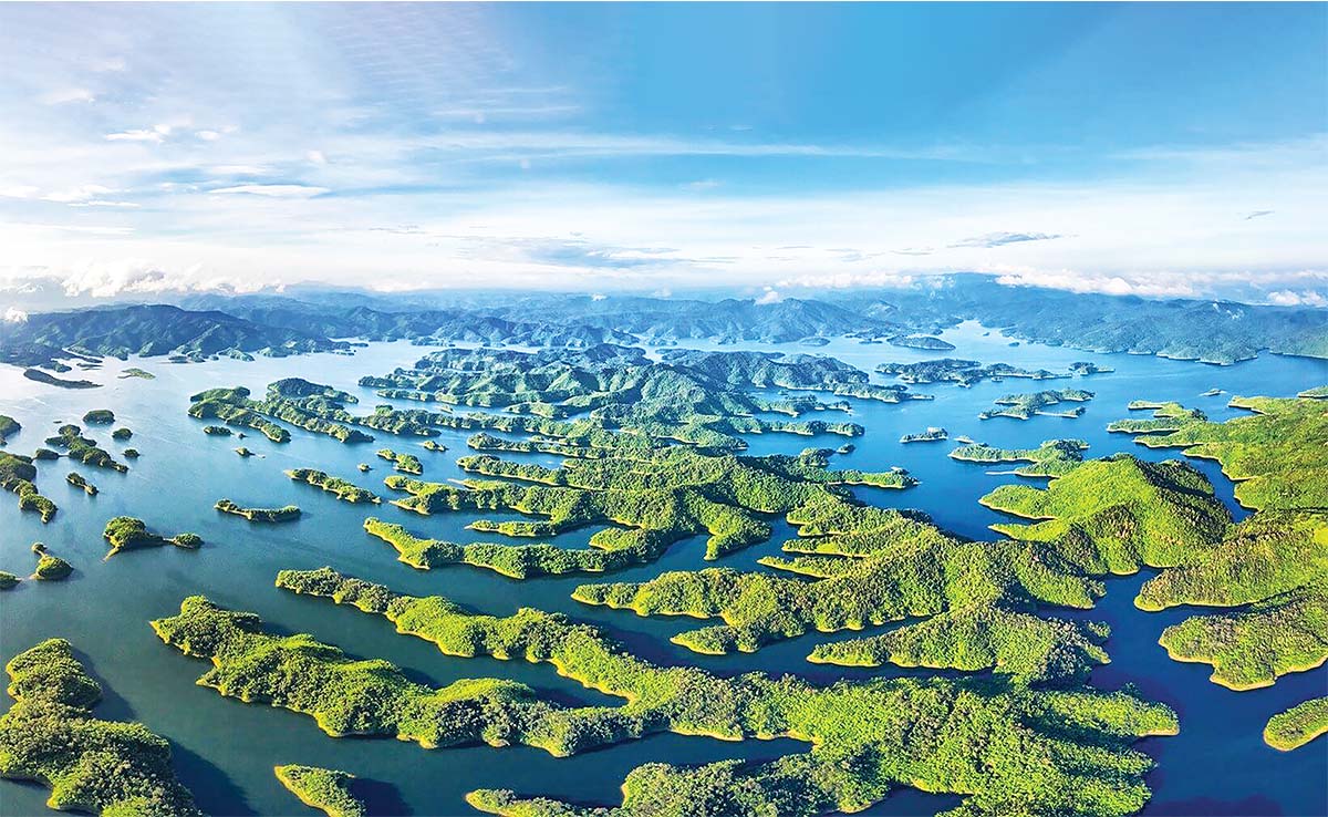 Nhìn từ trên cao, những hòn đảo phủ kín cây xanh nổi lên giữa mặt nước trong vắt như những viên ngọc rải rác giữa đại dương. Khung cảnh ấy khiến nhiều người không thể cưỡng lại mong muốn bước lên một chiếc thuyền để dạo chơi giữa lòng hồ. Đó là tiếng chim gọi nhau trên tán rừng, tiếng cá quẫy nước, tiếng mái chèo khẽ chạm mặt hồ. Thỉnh thoảng, tiếng máy thuyền của ngư dân lướt qua hòa cùng tiếng sóng vỗ mạn thuyền và tiếng gió vi vu qua tán cây, tạo thành một bản hòa âm dịu dàng của đại ngàn.