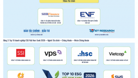Trong khuôn khổ Chương trình Nghiên cứu và Vinh danh về cam kết và thực hành ESG trong các ngành kinh tế chủ lực năm 2026, Viet Research phối hợp với Báo Tài chính - Đầu tư (Bộ Tài chính) chính thức công bố Top 10 Doanh nghiệp ESG Việt Nam Xanh 2026 ngành Tài chính - Chứng khoán (ESG10 - 2026).