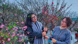 Những ngày giáp Tết Bính Ngọ, chợ hoa xuân tại phường Cẩm Phả (Quảng Ninh) trở nên nhộn nhịp. Sắc đào phai, đào bích cùng những chậu quất trĩu quả phủ hồng, nhuộm vàng một góc phố biển vùng mỏ.