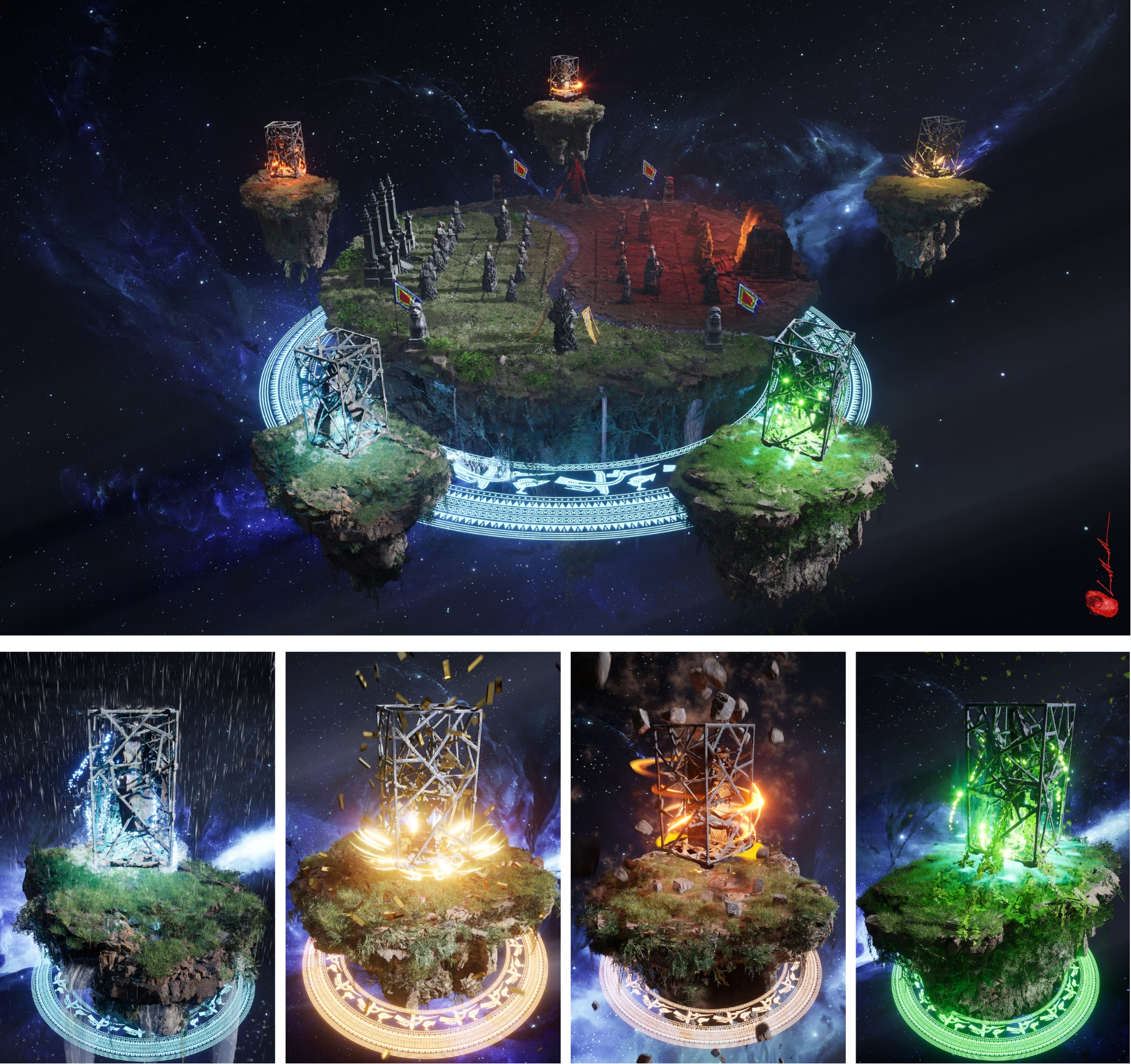 | Ảnh 3D ngũ hành trình chiếu tại triển lãm. Ảnh: BTC cung cấp. |