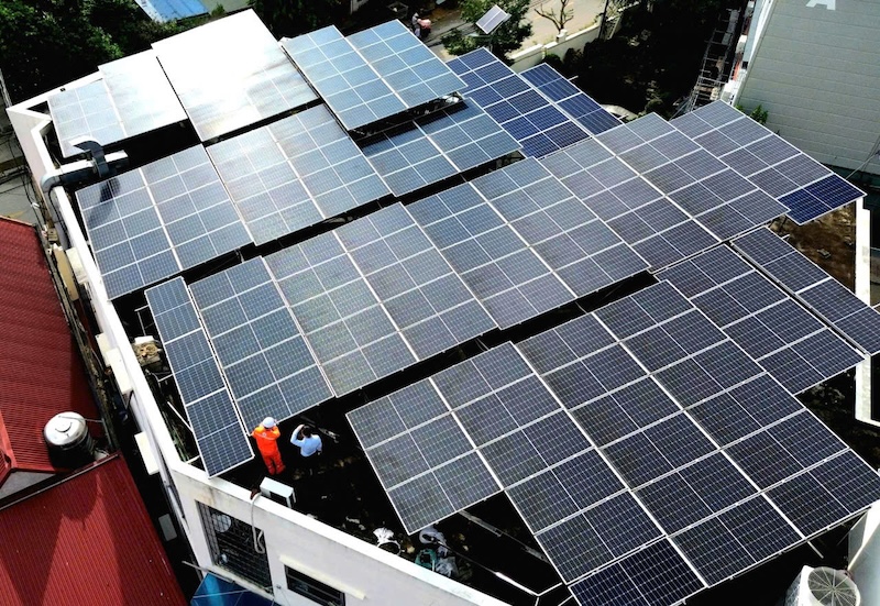 | Một hệ thống điện mặt trời mái nhà tại khu vực EVNNPC quản lý. Ảnh: Hồng Hạnh. |