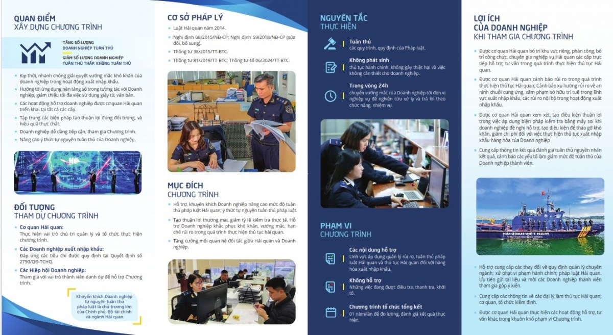 Cục Hải quan đã xây dựng chuyên mục “Doanh nghiệp tuân thủ pháp luật hải quan” trên Cổng thông tin điện tử Hải quan, cung cấp đầy đủ các quyết định, văn bản hướng dẫn, tiêu chí đánh giá, mẫu biểu đăng ký và danh sách doanh nghiệp thành viên. Các nội dung về nghiệp vụ, quy định pháp luật và thông tin điển hình vi phạm cũng được tích hợp nhằm giúp doanh nghiệp chủ động phòng tránh rủi ro.
