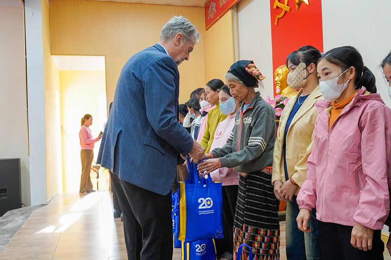 | Ông David John Whitehead, Chủ tịch Tập đoàn Mavin trao tận tay các hàng hóa cứu trợ cho người dân xã Thanh Phong |
