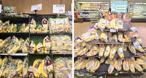 | Chuối tươi của THACO AGRI được trưng bày tại 2 siêu thị WING KITCHEN và ASU WITH ở Nhật Bản. |