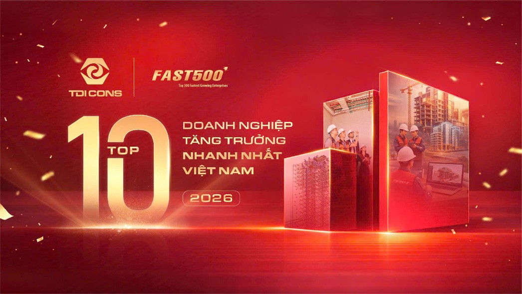 Việc góp mặt trong Top 10 FAST500 2026 là dấu mốc quan trọng, đồng thời khẳng định vị thế ngày càng vững chắc của TDI CONS trong lĩnh vực xây dựng tại Việt Nam.