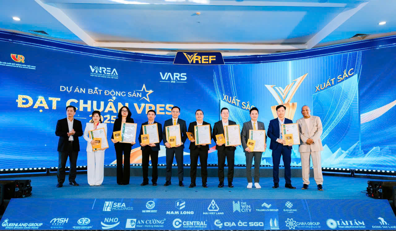 | Các doanh nghiệp nhận giải thưởng dự án bất động sản đạt chuẩn VRES Việt Nam 2025 hạng mục xuất sắc. |