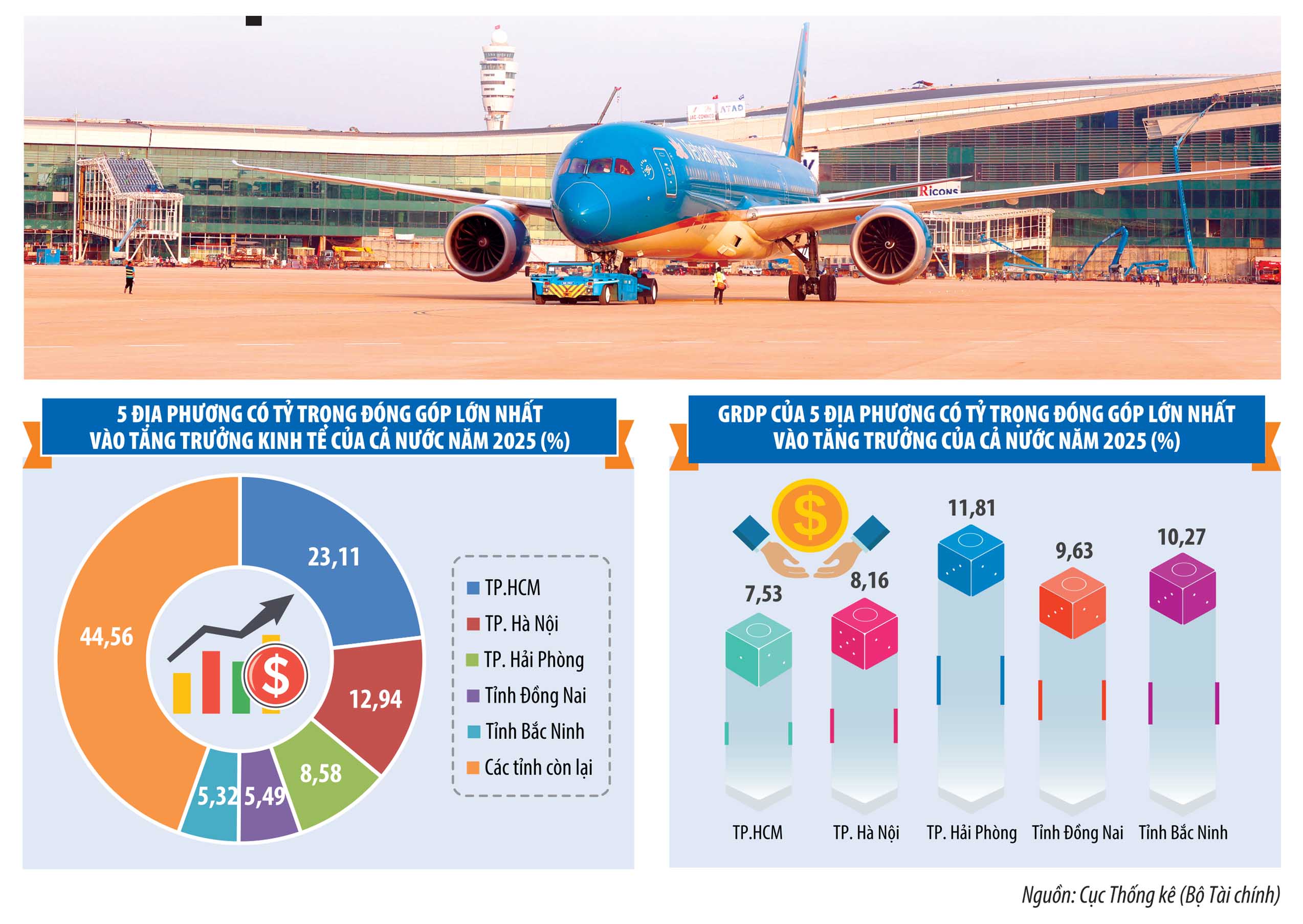 Yếu tố nền tảng quan trọng nhất, là việc sáp nhập, mở rộng địa giới hành chính từ ngày 1/7/2025, qua đó mở rộng không gian phát triển của toàn vùng kinh tế trọng điểm phía Nam. Không gian phát triển mới được mở rộng giúp hình thành một cực tăng trưởng có quy mô dân số lớn, cấu trúc kinh tế đa dạng và khả năng bổ trợ lẫn nhau rõ nét giữa các địa phương. Vì vậy, mục tiêu tăng trưởng hai con số không còn là phép cộng cơ học, mà là kỳ vọng về hiệu ứng lan tỏa và cộng hưởng trong toàn vùng.