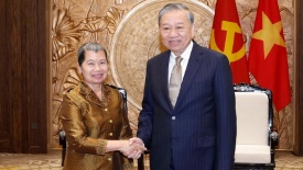 Tổng Bí thư Tô Lâm tiếp Đoàn đại biểu Đảng Nhân dân CampuchiaChiều ngày 26/01/2026, tại trụ sở Trung ương Đảng, Tổng Bí thư Ban Chấp hành Trung ương Đảng Cộng sản Việt Nam Tô Lâm đã tiếp bà Men Sam An, Phó Chủ tịch Đảng Nhân dân Campuchia, đại diện Chủ tịch Campuchia Hun Sen, sang chúc mừng thành công Đại hội đại biểu toàn quốc lần thứ XIV của Đảng Cộng sản Việt Nam.