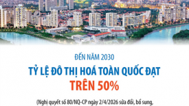 Đến năm 2030, tỷ lệ đô thị hoá toàn quốc đạt trên 50%Phấn đấu tỷ lệ đô thị hoá toàn quốc đến năm 2025 đạt tối thiểu 45%, đến năm 2030 đạt trên 50%. Tỷ lệ đất xây dựng đô thị trên tổng diện tích đất tự nhiên đạt khoảng 1,5 - 1,9% vào năm 2025, đến năm 2030 đạt khoảng 1,9 - 2,3%. -