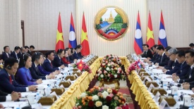 Việt Nam - Lào thúc đẩy gắn kết chiến lược, làm sâu sắc quan hệ đặc biệtSáng 9/4, tại Thủ đô Viêng Chăn, ngay sau lễ đón chính thức trọng thể, đồng chí Thường trực Ban Bí thư Trần Cẩm Tú đã hội đàm với đồng chí Vi-lay La-khăm-phong, Thường trực Ban Bí thư Trung ương Đảng Nhân dân Cách mạng Lào. -