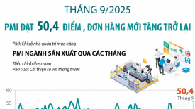 Chỉ số PMI ngành sản xuất Việt Nam tháng 9 năm 2025 đạt 50,4 điểm, giữ nguyên so với tháng trước. Kết quả cho thấy sức khỏe ngành sản xuất tiếp tục cải thiện nhẹ. Một trong những điểm sáng của tháng 9/2025 là số lượng đơn đặt hàng mới tăng trở lại sau khi giảm nhẹ vào tháng 8/2025.