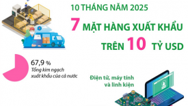 7 mặt hàng xuất khẩu trên 10 tỷ USD sau 10 tháng năm 202510 tháng năm 2025, có 7 mặt hàng xuất khẩu trên 10 tỷ USD, chiếm 67,9% tổng kim ngạch xuất khẩu. -