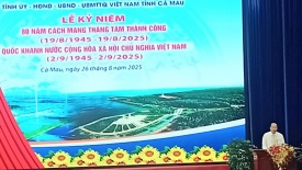 Chiều 26/8/2025, tỉnh Cà Mau long trọng tổ chức Lễ kỷ niệm 80 năm Cách mạng tháng Tám thành công (19/8/1945 - 19/8/2025) và Quốc khánh nước Cộng hoà xã hội chủ nghĩa Việt Nam (2/9/1945 - 2/9/2025).