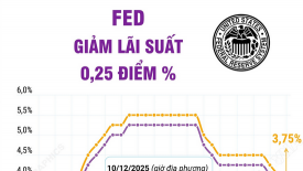 Fed hạ lãi suất 0,25 điểm phần trămNgày 10/12/2025 (giờ địa phương), Cục Dự trữ liên bang Mỹ (Fed) quyết định hạ lãi suất 0,25 điểm phần trăm và phát tín hiệu có thể sẽ tạm dừng các đợt cắt giảm chi phí đi vay tiếp theo, đúng như dự đoán của thị trường. Theo đó, lãi suất liên bang của Mỹ được đưa về biên độ 3,5% - 3,75%, mức thấp nhất kể từ tháng 11/2022. -