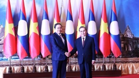 Thủ tướng Phạm Minh Chính gặp Thủ tướng LàoChiều 5/2/2026, tại Thủ đô Vientiane, Thủ tướng Phạm Minh Chính gặp Thủ tướng Lào Sonexay Siphandone. -