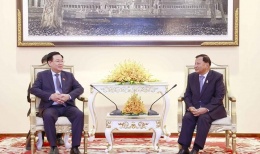 Chủ tịch Quốc hội Vương Đình Huệ yết kiến Quốc vương Campuchia