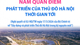 Năm quan điểm phát triển của Thủ đô Hà Nội thời gian tớiNgày 17/3/2026, Tổng Bí thư Tô Lâm ký ban hành Nghị quyết số 02-NQ/TW của Bộ Chính trị về “Xây dựng và phát triển Thủ đô Hà Nội trong kỷ nguyên mới”. Trên cơ sở đánh giá tình hình thực tiễn tại Thủ đô Hà Nội những năm qua, Nghị quyết đề ra 5 quan điểm phát triển của Thủ đô thời gian tới. -