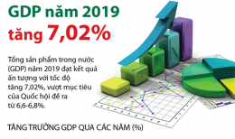 Con số chính thức: Tăng trưởng GDP năm 2019 là 7,02%Tổng cục Thống kê vừa chính thức công bố, tăng trưởng GDP năm 2019 ước đạt 7,02%. Đây là năm thứ hai liên tiếp kể từ năm 2011, tăng trưởng kinh tế của Việt Nam đạt trên 7%. -