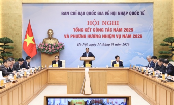 Ngày 14/1, Thủ tướng Chính phủ Phạm Minh Chính, Trưởng Ban Chỉ đạo quốc gia về hội nhập quốc tế chủ trì Hội nghị tổng kết công tác năm 2025, triển khai nhiệm vụ năm 2026 của Ban Chỉ đạo.
