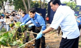 Thăm Bệnh viện Nhi đồng TP HCM đang xây dựng tại huyện Bình Chánh sáng 6/3, Bí thư thành ủy Đinh La Thăng cho rằng tiến độ nhanh nhưng phải nghĩ cảnh 4-5 bệnh nhi một giường bệnh để thấy xây quá chậm.