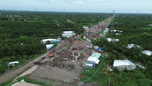 | Dự án đường cao tốc Cao Lãnh - An Hữu đoạn qua địa bàn tỉnh Đồng Tháp đang thi công. Ảnh: NLĐ. |