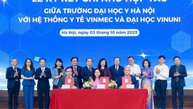 Trường Đại học Y Hà Nội, Vinmec và VinUni hợp tác xây dựng hệ sinh thái học thuật y tế chuẩn thế giớiNgày 3/10/2025, Trường Đại học Y Hà Nội, Hệ thống Y tế Vinmec và Trường Đại học VinUni đã ký kết hợp tác chiến lược về đào tạo, nghiên cứu và thực hành lâm sàng, hướng tới xây dựng hệ sinh thái học thuật y tế toàn diện, đạt đẳng cấp quốc tế. -