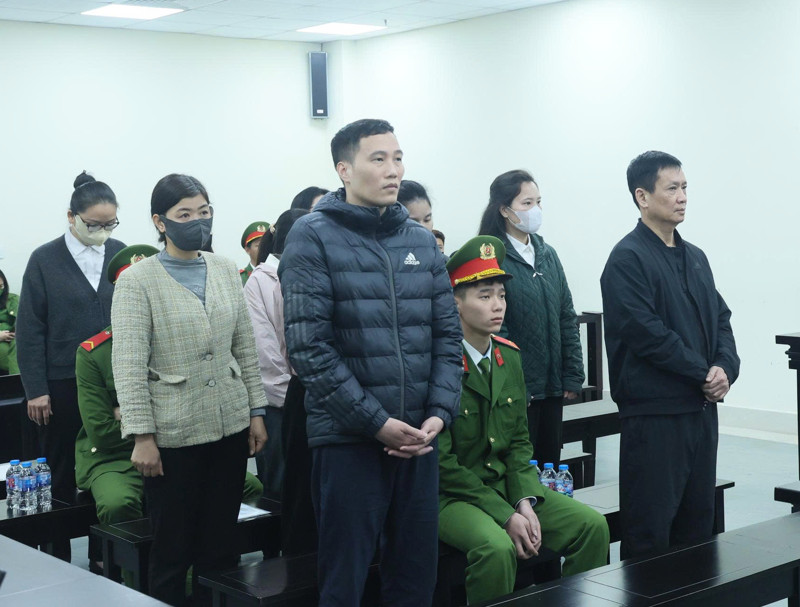 | Các bị cáo tại phiên tòa sơ thẩm. |